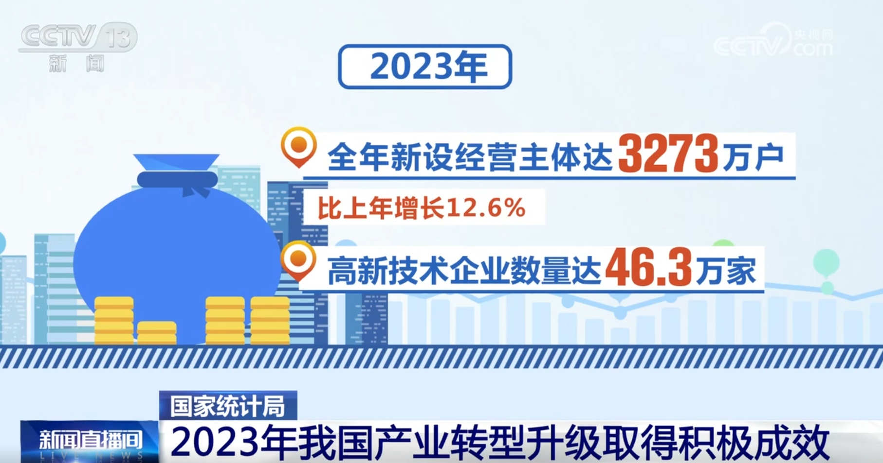 國家統(tǒng)計(jì)局最新數(shù)據(jù)還顯示,2023年,我國經(jīng)營主體較快增加,投資結(jié)構(gòu)不斷優(yōu)化,傳統(tǒng)產(chǎn)業(yè)轉(zhuǎn)型升級(jí)速度加快,新產(chǎn)業(yè)新業(yè)態(tài)正持續(xù)壯大。
