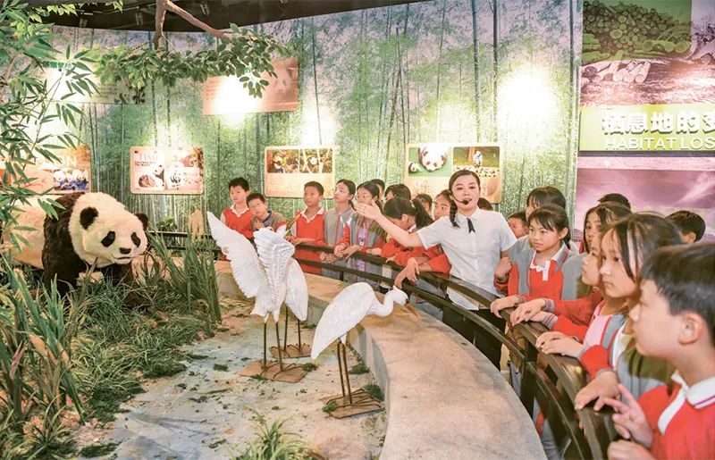 新時代以來,教育系統(tǒng)著力推動思想政治教育、專業(yè)教育與創(chuàng)新教育、社會實踐、志愿服務(wù)等的融合。圖為2024年5月17日,學(xué)生們在江西宜豐熊貓科技館開展“行走的思政課”主題科普教育活動,增強節(jié)約資源和保護自然環(huán)境意識。 人民圖片 周亮/攝