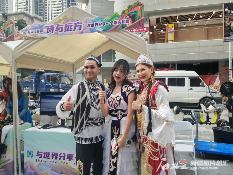 來自大連的王先生到廣州出差,途經(jīng)“萬人說新疆”活動(dòng)現(xiàn)場,他停下了腳步?!斑@是第一次近距離了解新疆的非遺展品,第一次吃到正宗的新疆美食,我好喜歡,希望‘萬人說新疆’活動(dòng)可以走進(jìn)我的家鄉(xiāng)大連?!蓖跸壬f,一直覺得新疆很遙遠(yuǎn),這一次短暫的接觸新疆人文和美景后,感覺詩與遠(yuǎn)方魅力無限,再遠(yuǎn)也值得去一趟。