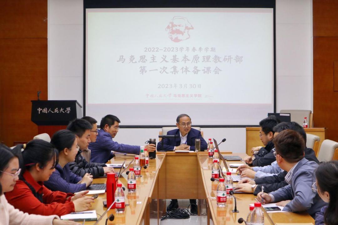 ▲中國人民大學(xué)舉辦《習(xí)近平新時代中國特色社會主義思想概論》集體備課會,黨委書記張東剛領(lǐng)銜備課。