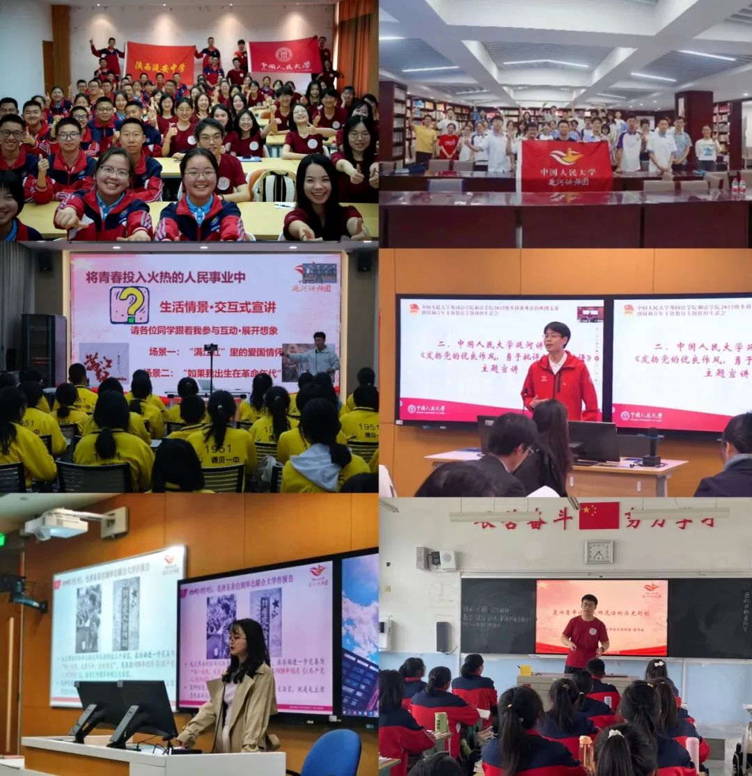 2021年7月,中國人民大學(xué)組建延河講師團,打造一支大中小學(xué)思政教育一體化的青年宣講“輕騎兵”,以青年聲音宣傳黨的奮斗歷程和偉大成就、光榮傳統(tǒng)和優(yōu)良作風(fēng)、實踐創(chuàng)造和理論創(chuàng)新,講好“黨旗下的思政課”?,F(xiàn)已推出7個專題、116門精品課程,以革命老區(qū)、脫貧摘帽地區(qū)、民族邊疆地區(qū)中小學(xué)校為重點,開展宣講活動600余場,覆蓋超過170萬人次、3000所學(xué)校。