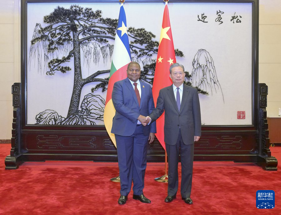 9月6日,全國(guó)人大常委會(huì)委員長(zhǎng)趙樂際在北京會(huì)見來華出席中非合作論壇北京峰會(huì)的中非總統(tǒng)圖瓦德拉。新華社記者 高潔 攝