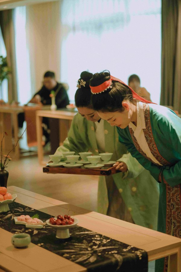 在浙江,說到茶文化,不得不提徑山茶宴。徑山茶宴是杭州余杭徑山萬壽禪寺接待貴客上賓時的一種大堂茶會,是獨特的以茶敬客的莊重傳統(tǒng)茶宴禮儀習(xí)俗,是中國古代茶宴禮俗的存續(xù)。徑山茶宴起源于唐朝中期,《余杭縣志》有唐朝徑山寺開山祖師法欽“佛供茶”條目,盛行于宋元時期,后流傳至日本,成為日本茶道之源。