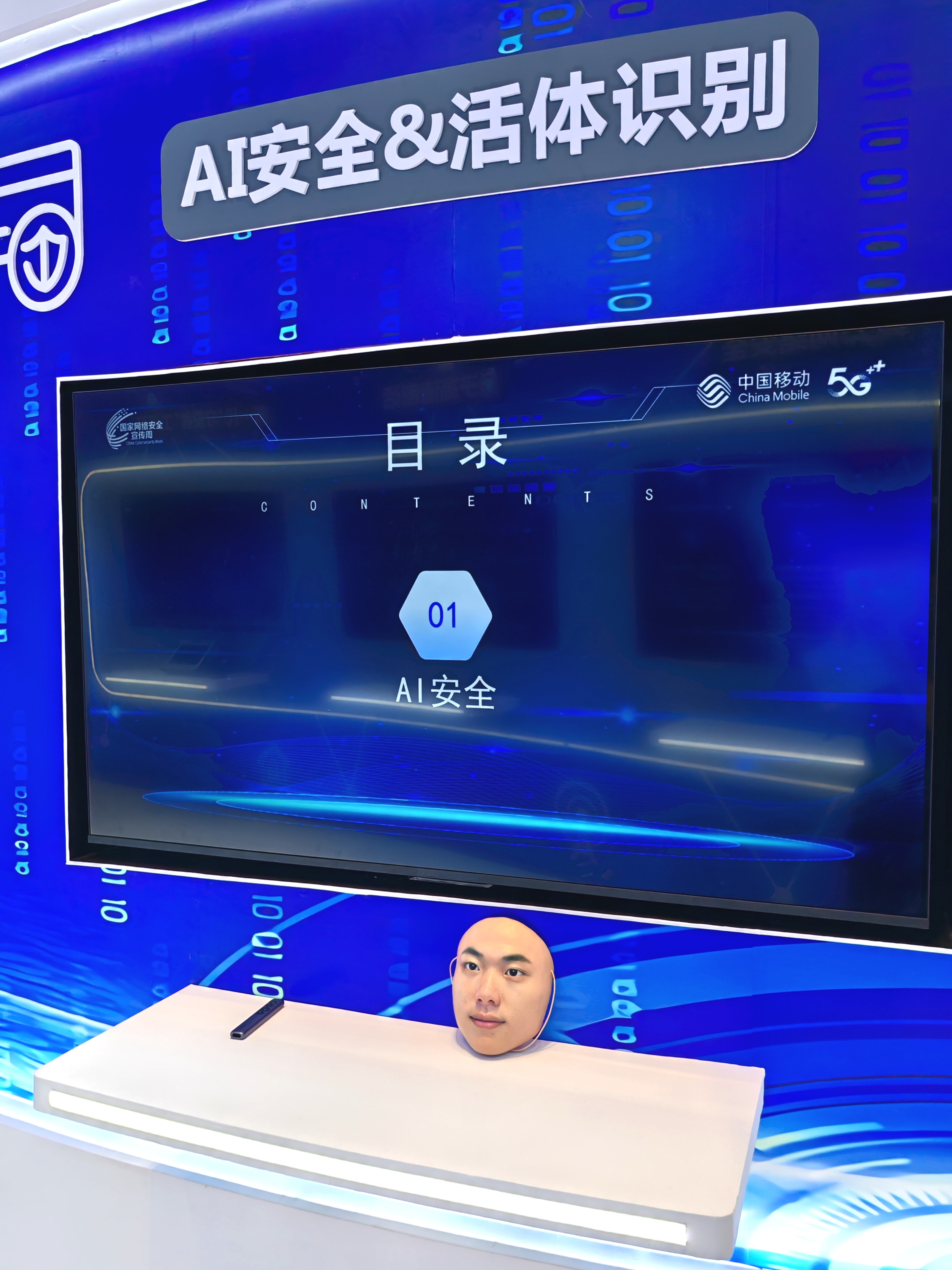 圖為中國(guó)移動(dòng)集團(tuán)展示的AI安全&活體識(shí)別技術(shù)。中國(guó)經(jīng)濟(jì)網(wǎng)記者 梁秋亞攝