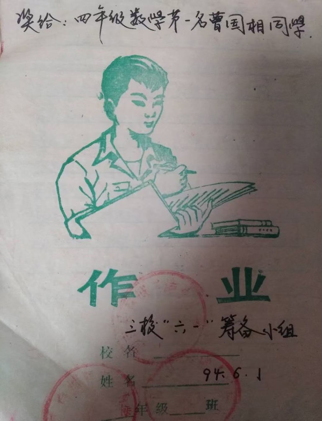 曹國相小學(xué)三年級時被老師獎勵的本子,他很珍惜。
