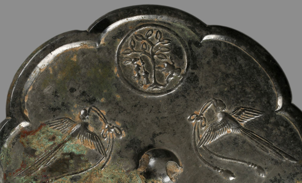 銅鏡的用途在實(shí)用之外,也發(fā)展出了裝飾、祈福、表達(dá)祝愿等多種功能?!爱?dāng)窗理云鬢,對鏡貼花黃?!薄皶早R但愁云鬢改,夜吟應(yīng)覺月光寒?!惫湃私桤R寄情的吟詠有許多??脊刨Y料還證實(shí),銅鏡在古代并不是女性的專屬用品,也有不少男性墓葬中隨葬了銅鏡。