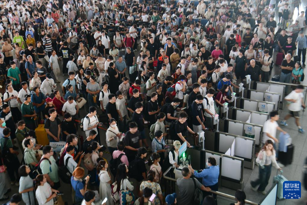 9月17日,在江蘇無(wú)錫火車(chē)站檢票口,旅客檢票進(jìn)站臺(tái)。