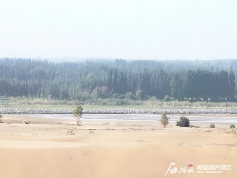 這是和田地區(qū)民豐縣面臨的沙漠圍城之困。流沙逼近縣城,流淌千年的尼雅河成為阻擋風(fēng)沙的最后屏障。