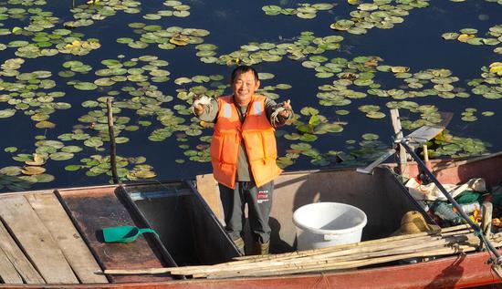 金秋時節(jié),位于新疆維吾爾自治區(qū)巴音郭楞蒙古自治州博湖縣境內(nèi)的博斯騰湖的螃蟹迎來豐收季,波光粼粼的湖面上,穿梭的漁船與蘆葦、睡蓮、沙漠構(gòu)成一幅生動的秋日畫卷。