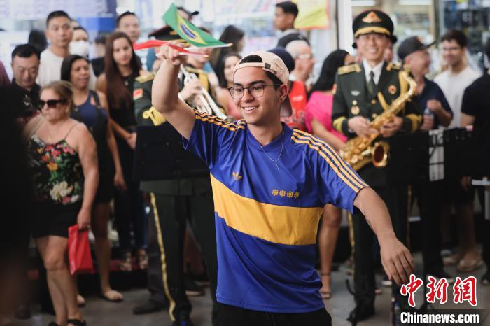當(dāng)《巴西水彩畫(huà)》《依帕內(nèi)瑪?shù)呐ⅰ返劝臀鳟?dāng)?shù)囟炷茉數(shù)臉?lè)曲響起時(shí),現(xiàn)場(chǎng)氛圍掀起一個(gè)高潮,熱情奔放的巴西民眾紛紛走進(jìn)“舞臺(tái)”中央,跟著節(jié)奏扭起了巴西特色的桑巴舞,還有人情不自禁地哼起了歌曲。
