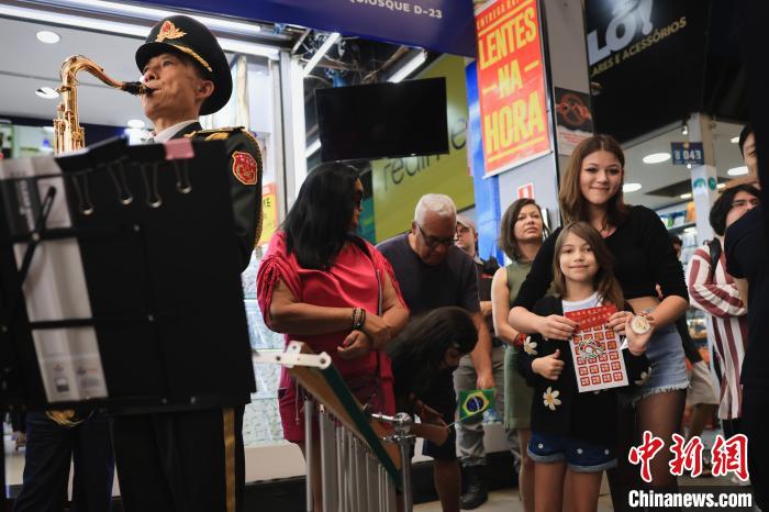 當(dāng)?shù)貢r(shí)間9月21日,巴西首都巴西利亞,參加中國(guó)軍事文化周活動(dòng)的中國(guó)人民解放軍軍樂(lè)團(tuán)演出分隊(duì),在巴西利亞小商品市場(chǎng)演出,民眾互動(dòng)熱烈。琚振華 攝
