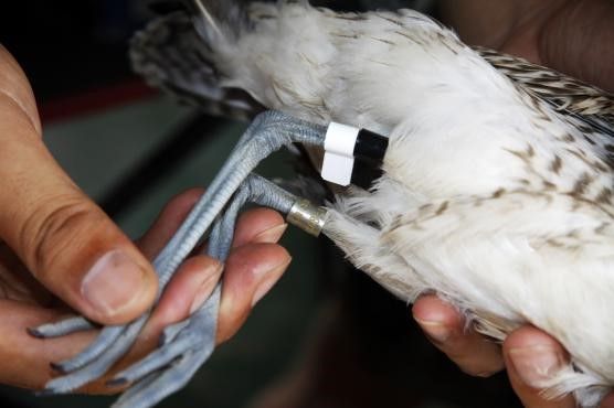 環(huán)志,簡(jiǎn)單說(shuō)就是給鳥(niǎo)“上身份”——在鳥(niǎo)腿上佩戴刻有唯一編碼和中國(guó)鳥(niǎo)類環(huán)志中心地址的金屬環(huán),有時(shí)還佩戴彩色塑料旗標(biāo)或塑料環(huán)。“通過(guò)環(huán)志可以得知鳥(niǎo)的基本信息、遷徙規(guī)律,包括年齡、繁殖地、越冬地、飛行途中在哪里停歇等。”吳巍說(shuō)。