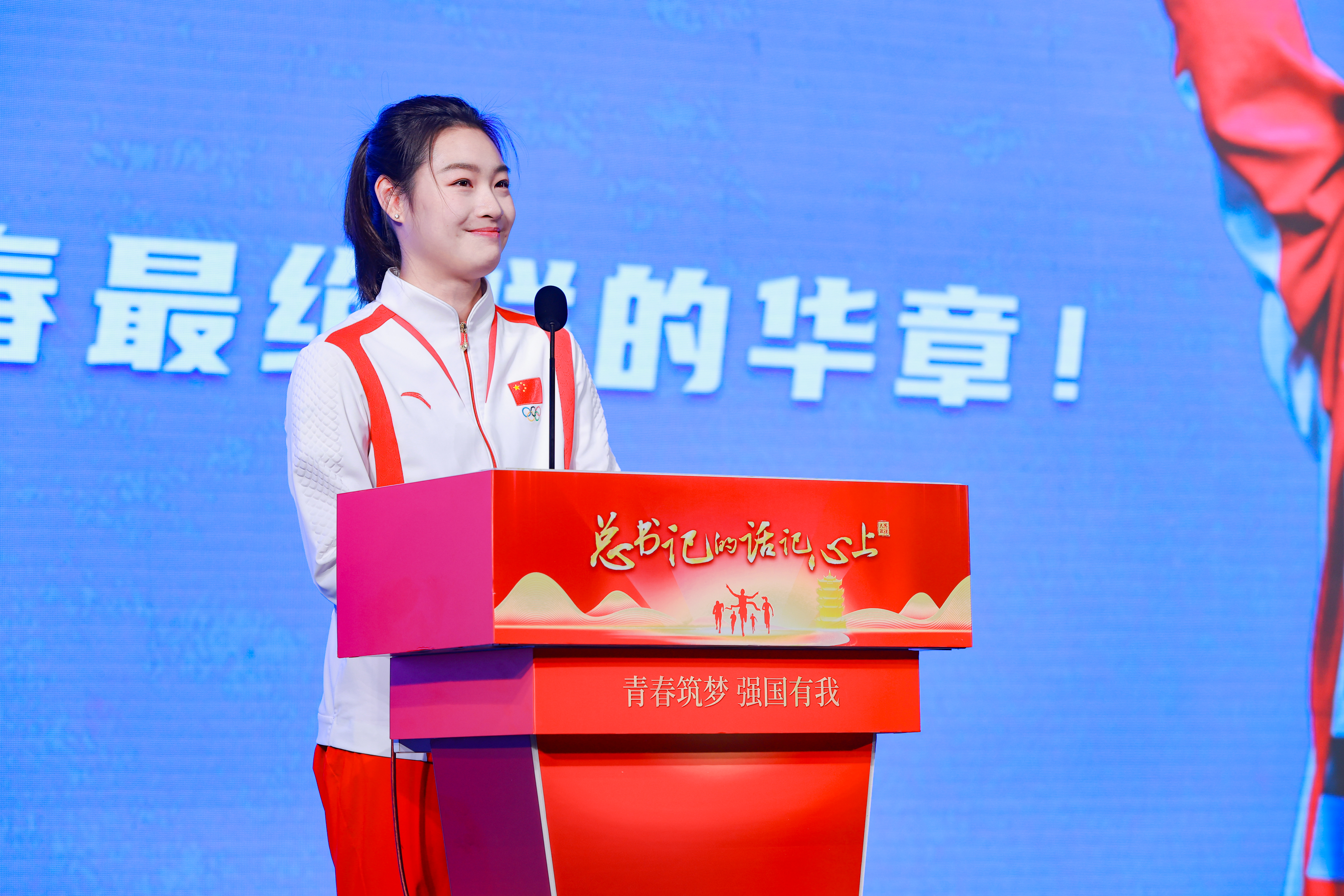 奧運(yùn)冠軍昌雅妮驚喜亮相,一到現(xiàn)場(chǎng)就引起了學(xué)生們的歡呼與喝彩。她和同學(xué)們親密合影,引爆全場(chǎng)!接著,她登臺(tái)動(dòng)情講述奪冠背后的故事:“從跳校到奧運(yùn)冠軍,我的每一步都凝聚著汗水、淚水與堅(jiān)持……”回憶起訓(xùn)練的艱辛歷程,她幾度哽咽落淚,讓人心疼。決勝巴黎、綻放奧運(yùn)的背后,是堅(jiān)持的力量!昌雅妮以自己的切身經(jīng)歷,激勵(lì)青年學(xué)子:“只要有夢(mèng)想,我們就不懼遠(yuǎn)航,堅(jiān)持的力量,將繪就青春最絢爛的華章!”