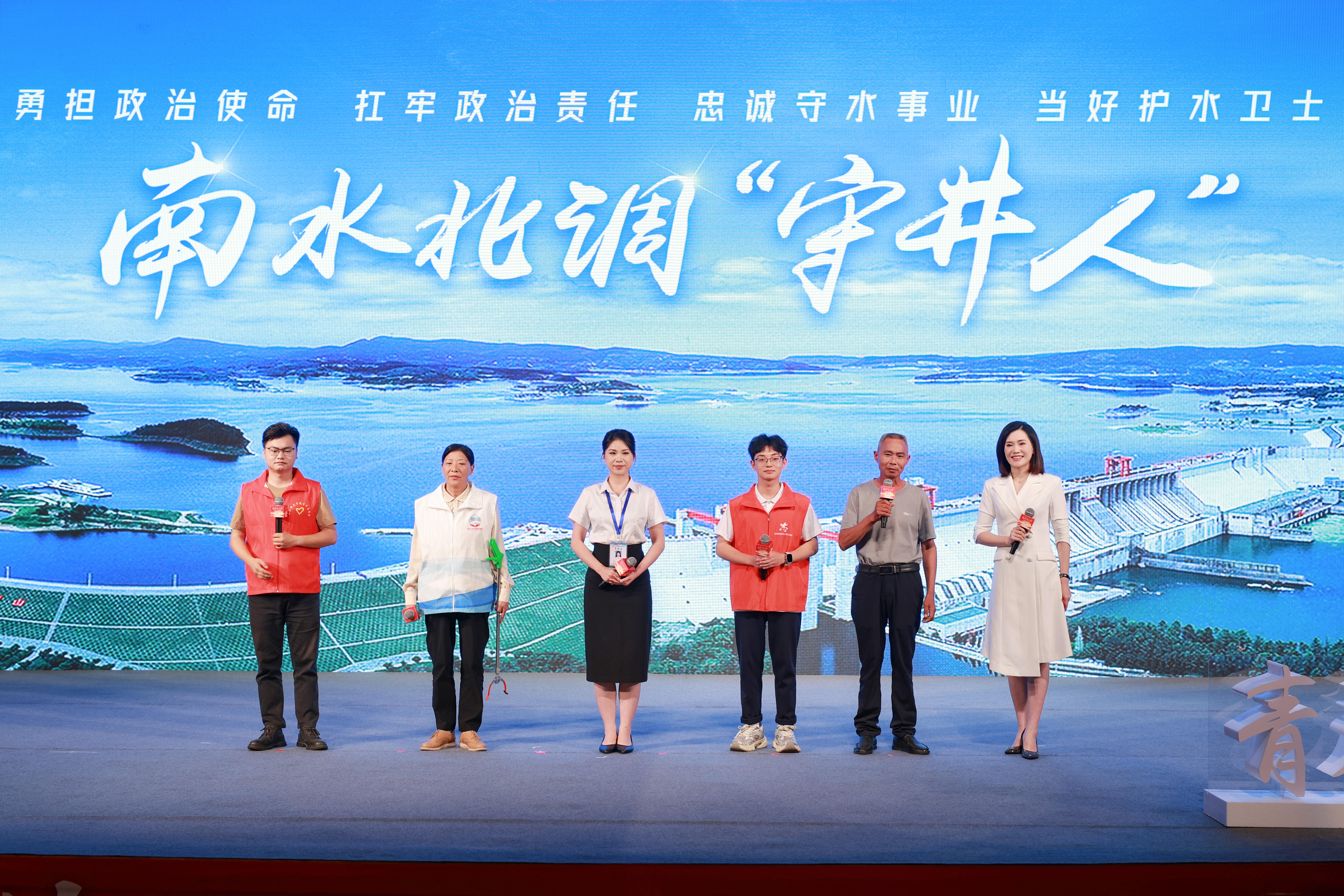 今年8月,一封來自習(xí)近平總書記的回信在丹江口庫(kù)區(qū)引起了強(qiáng)烈反響。丹江口守水護(hù)水志愿者吳勇分享《南水北調(diào)“守井人”》的故事:10年來,鄂西北的丹江口群眾一直堅(jiān)持做著一件“點(diǎn)滴的事”,也是“天大的事”——確?!耙汇逅览m(xù)北送”!丹江口的守水調(diào)度員余丹、清漂員張旭春、護(hù)水員秦立萍、學(xué)生志愿者瞿德齊來到現(xiàn)場(chǎng),并一起倡議:“踐行總書記的囑托,繼續(xù)弘揚(yáng)志愿服務(wù)精神,當(dāng)好‘守井人’,確?!汇逅览m(xù)北送’”!