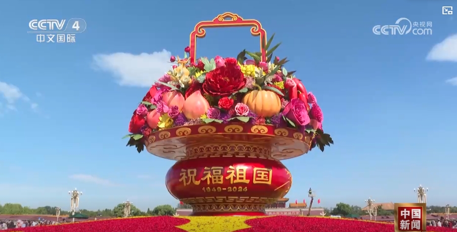 25日,北京天安門(mén)廣場(chǎng)和長(zhǎng)安街沿線等重點(diǎn)區(qū)域花卉正式亮相。天安門(mén)廣場(chǎng)中心的“祝福祖國(guó)”大型花壇,吸引了眾多游客拍照打卡。