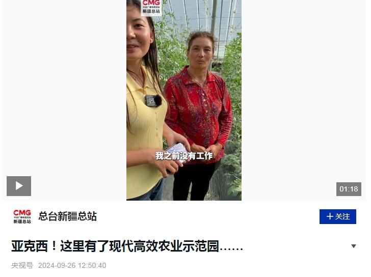 阿依謝姆古麗,在新疆喀什地區(qū)疏勒縣的山東省援疆項目“蔬樂”現(xiàn)代高效農(nóng)業(yè)示范園,從事西瓜種植工作已經(jīng)兩年了?!白鳛檗r(nóng)民的她,之前沒有收入?!闭劦竭@份工作,阿依謝姆古麗激動得熱淚盈眶。