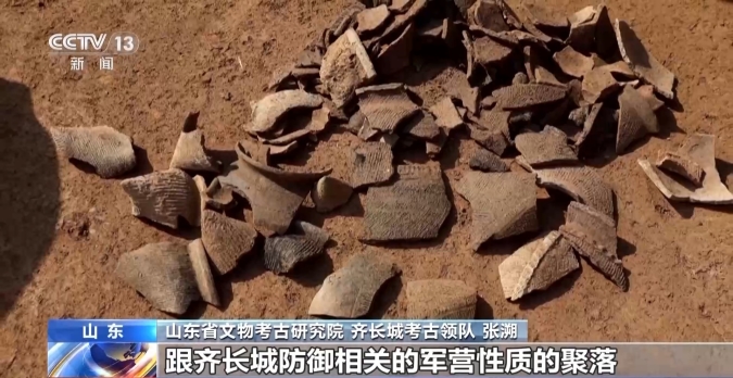 山東省文物考古研究院、齊長城考古領隊張溯:它跟齊長城又有道路相連接,還發(fā)現(xiàn)了一些紅燒土、灶之類的跟生活相關的遺跡,所以我們推斷它是跟齊長城防御相關的軍營性質(zhì)的聚落。
