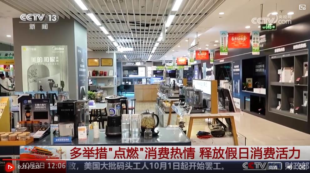 央視網(wǎng)消息:國慶假期開啟,消費(fèi)市場(chǎng)也迎來了旺季。各地紛紛加大力度滿足節(jié)日市場(chǎng)供給、保障好節(jié)日需求。同時(shí),創(chuàng)新供給方式、推出新的消費(fèi)場(chǎng)景、加大文旅產(chǎn)品供應(yīng),加力推進(jìn)消費(fèi)品以舊換新,進(jìn)一步激活市場(chǎng)。