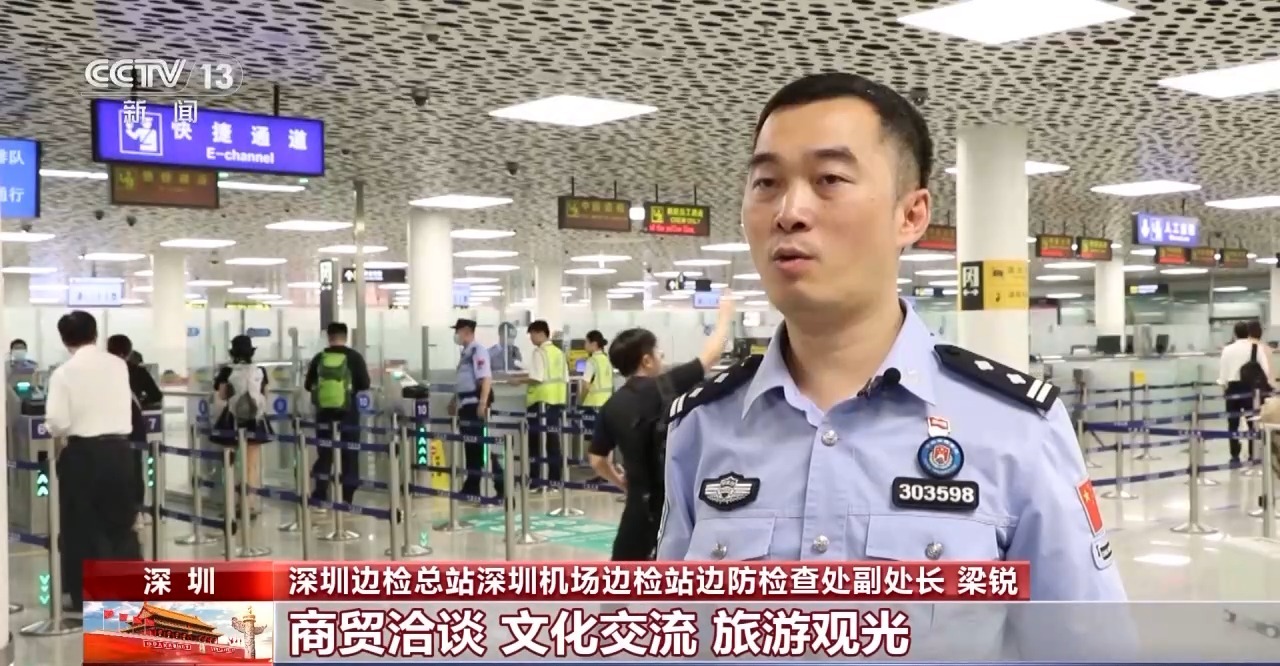 深圳邊檢總站深圳機場邊檢站邊防檢查處副處長 梁銳:今年經(jīng)深圳機場來華商貿洽談、文化交流、旅游觀光、探親訪友的入境外籍人員超36萬人次,同比增長約143%。其中,免簽入境外籍人員超13萬人次,同比增長5倍多。
