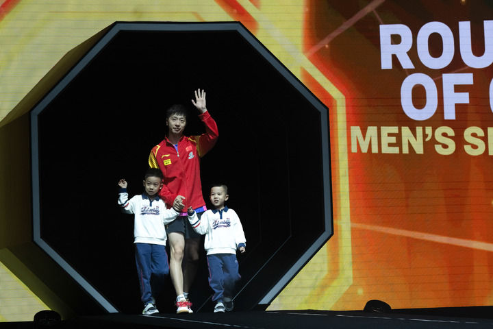 9月30日,馬龍帶著他的兒子們步入賽場。當(dāng)日,在北京舉行的2024年世界乒乓球職業(yè)大聯(lián)盟(WTT)中國大滿貫?zāi)袉问纵啽荣愔?,中國選手馬龍3比0戰(zhàn)勝英格蘭選手利亞姆·皮切福特,晉級32強。新華社記者 肖藝九 攝