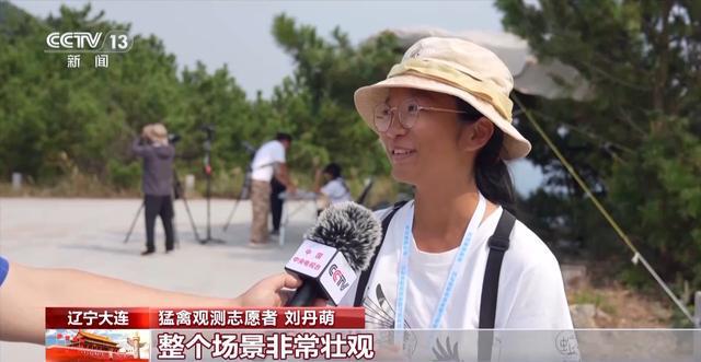 猛禽觀測志愿者 劉丹萌:“萬猛日”當天真的心情非常激動,整個場景非常壯觀,可以看到無數(shù)的小黑點從這個山頭開始冒起,像一條河一樣非常長,一直連到對面的山東煙臺,這一整片天空全部都被猛禽占滿了,實在是太震撼、太壯觀了。