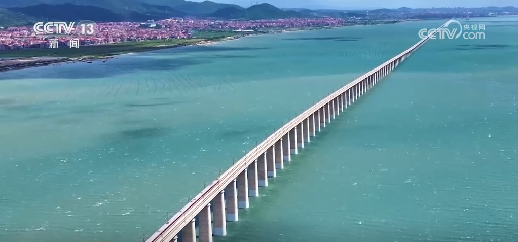 這是我國首條設計時速350公里的跨海高鐵——福廈高鐵湄洲灣跨海大橋。碧波之上,大橋氣勢恢宏,連接兩岸。在跨海大橋上行車,受海上風力影響很大,通過這樣的路段通常需要減速慢行。但福廈高鐵實現(xiàn)了“跨海過橋不減速”,在不設風屏障等防風措施下,列車可在8級大風下以時速350公里速度行駛。國慶假期,福廈高鐵加開195趟列車,滿足旅客出行需求。