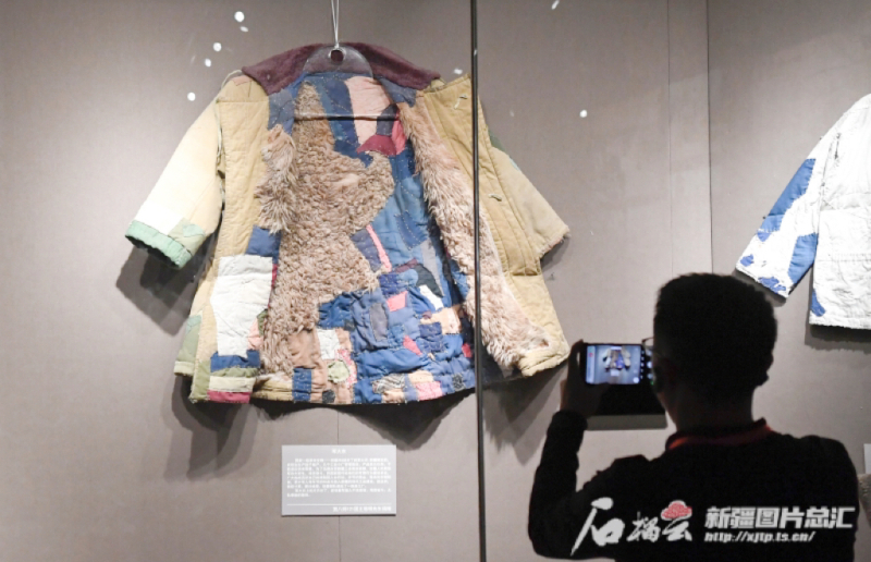 9月22日,游客在一件有著296塊補(bǔ)丁的軍大衣前駐足拍攝。(資料圖)石榴云/新疆日報記者 湯永攝