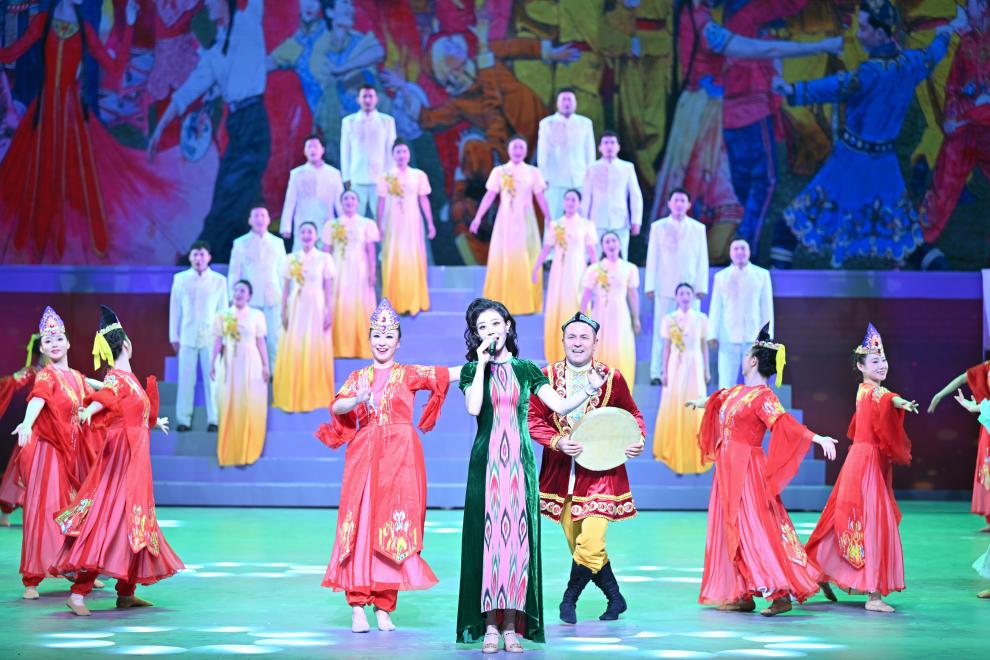10月6日,慶祝新疆生產(chǎn)建設(shè)兵團(tuán)成立70周年文藝晚會《光榮使命》在烏魯木齊文化中心大劇院舉行。