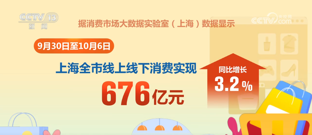 消費(fèi)市場(chǎng)大數(shù)據(jù)實(shí)驗(yàn)室(上海)數(shù)據(jù)顯示,9月30日至10月6日,上海全市線上線下消費(fèi)實(shí)現(xiàn)676億元,同比增長(zhǎng)3.2%。36個(gè)重點(diǎn)商圈進(jìn)店線下客流總量達(dá)到3449萬人次,同比增長(zhǎng)9.8%,25個(gè)商圈客流實(shí)現(xiàn)增長(zhǎng)。消費(fèi)新場(chǎng)景的開業(yè)亮相為節(jié)日市場(chǎng)打造新動(dòng)力,徐匯區(qū)的西岸夢(mèng)中心聯(lián)動(dòng)首屆上海國(guó)際光影節(jié)徐匯分會(huì)場(chǎng),以多家濱水首店新開、多元商旅文體展融合活動(dòng)吸引廣大客流;浦東新區(qū)的前灘公園巷開街,與周邊的商場(chǎng)和公園共同形成“商場(chǎng)+街區(qū)+濱江公園”的商業(yè)形態(tài),吸引客流8.7萬人次。
