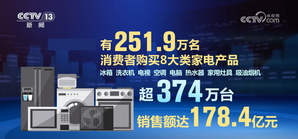 商務(wù)部商務(wù)大數(shù)據(jù)監(jiān)測(cè),節(jié)日期間,全國(guó)重點(diǎn)零售和餐飲企業(yè)銷(xiāo)售額按可比口徑同比增長(zhǎng)4.5%,有251.9萬(wàn)名消費(fèi)者購(gòu)買(mǎi)8大類家電產(chǎn)品超374萬(wàn)臺(tái),銷(xiāo)售額達(dá)178.4億元。全國(guó)實(shí)物商品網(wǎng)絡(luò)零售額同比增長(zhǎng)超9%,郵政快遞業(yè)共攬投快遞包裹超62.81億件。