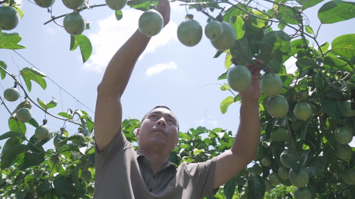 這種質(zhì)樸的鄉(xiāng)土智慧不僅體現(xiàn)在古老的建筑、傳統(tǒng)的生活方式中,更延伸到現(xiàn)代社會的發(fā)展轉(zhuǎn)型里。如今,增沖侗寨積極探尋發(fā)展的新航道。在產(chǎn)業(yè)發(fā)展的大舞臺上,侗族新農(nóng)人們展現(xiàn)出勇于創(chuàng)新的精神風(fēng)貌,積極開拓發(fā)展了淫羊藿產(chǎn)業(yè),500畝的林下經(jīng)濟(jì)蓬勃興起;建起黃牛養(yǎng)殖項目,而利用黃牛糞便種植80多畝百香果更是一舉多得的妙招;合作社一些專人直播帶貨,不僅讓產(chǎn)品實現(xiàn)了增值,還為本村帶來了大量的就業(yè)機(jī)會。像梁建高一樣滿懷對家鄉(xiāng)熱愛的侗寨子弟,深信增沖的未來充滿希望,毅然回村開起了民宿。