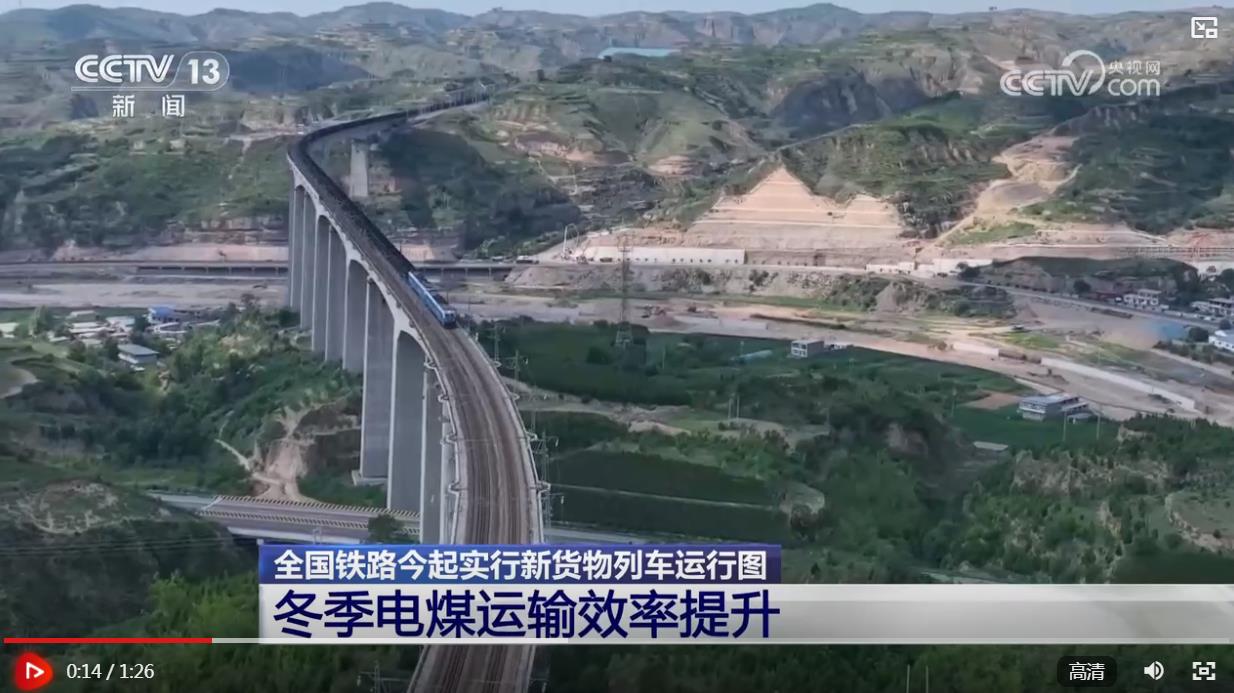 央視網消息:記者從國鐵集團獲悉,10月11日起,全國鐵路實行新的貨物列車運行圖。此次調圖,正值冬季電煤運輸關鍵期,全國鐵路進一步增加了煤炭運輸能力。