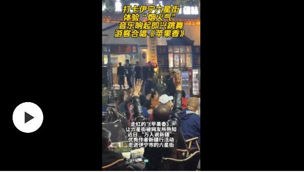 六星街的“蘋果香”餐廳更是成為眾多游客的打卡點,他們在品嘗新疆美食的同時,也跟著齊聲合唱被稱為“六星街成名曲”的《蘋果香》。
