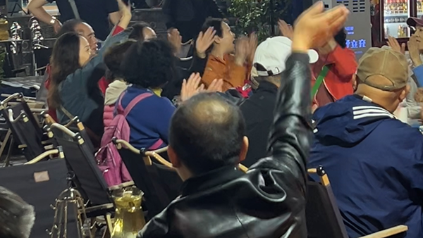 游客齊聲合唱《蘋果香》。中國青年網(wǎng)記者 馬志強攝