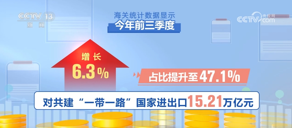 海關(guān)統(tǒng)計數(shù)據(jù)顯示,今年前三季度,我國市場多元化穩(wěn)步推進,與全球160多個國家和地區(qū)貿(mào)易實現(xiàn)增長。對共建“一帶一路”國家進出口15.21萬億元,同比增長6.3%,占比提升至47.1%。對RCEP其他成員國進出口9.63萬億元,增長4.5%,其中對東盟進出口5.09萬億元,增長9.4%。同期,對歐盟、美國分別進出口4.18萬億和3.59萬億元,分別增長0.9%、4.2%。
