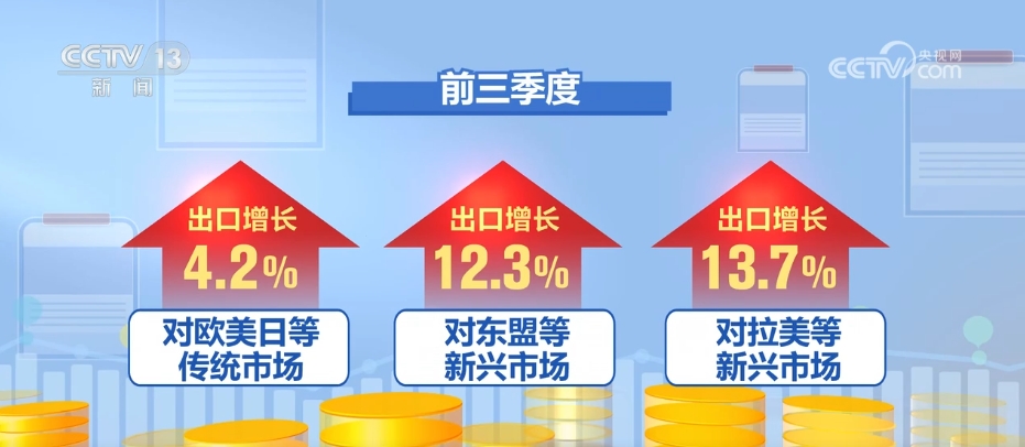 需求方面,從國際看,最新的世貿(mào)組織報告上調(diào)了對全年貨物貿(mào)易量增速的預(yù)測,世界銀行、經(jīng)合組織等機構(gòu)認(rèn)為全球經(jīng)濟正在企穩(wěn),外需回暖為我國出口創(chuàng)造了有利條件。前三季度,我國對歐美日等傳統(tǒng)市場出口增長了4.2%,對東盟、拉美等新興市場出口分別增長了12.3%、13.7%。