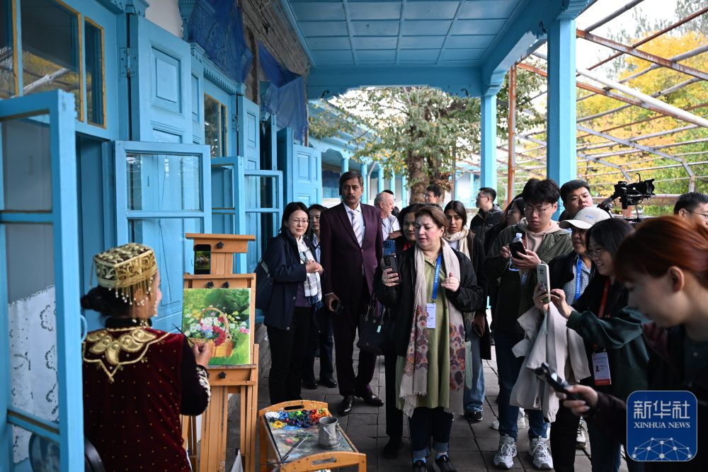 10月15日,與會嘉賓在伊寧市喀贊其民俗旅游區(qū)參訪。