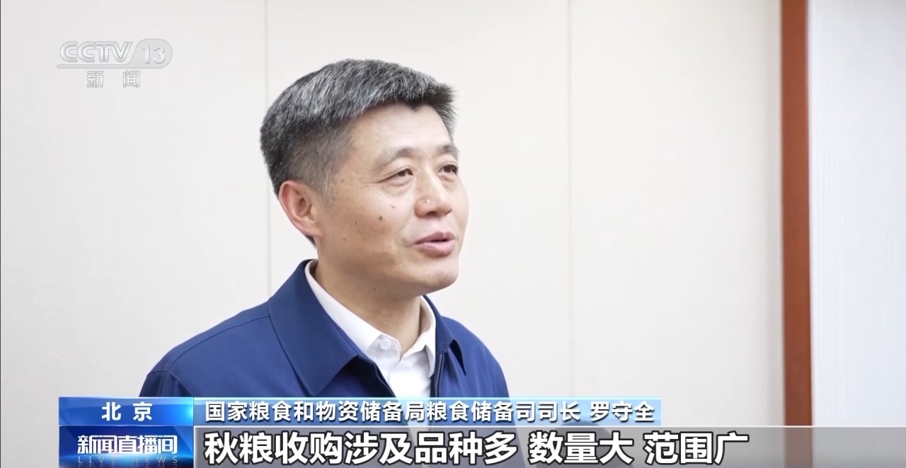 國家糧食和物資儲備局糧食儲備司司長 羅守全:目前,南方中晚稻已經(jīng)上市,東北和華北秋糧還有半個月左右也將集中上市。目前,主產(chǎn)區(qū)準備收購倉容超過3億噸,能夠滿足農(nóng)民售糧需求。