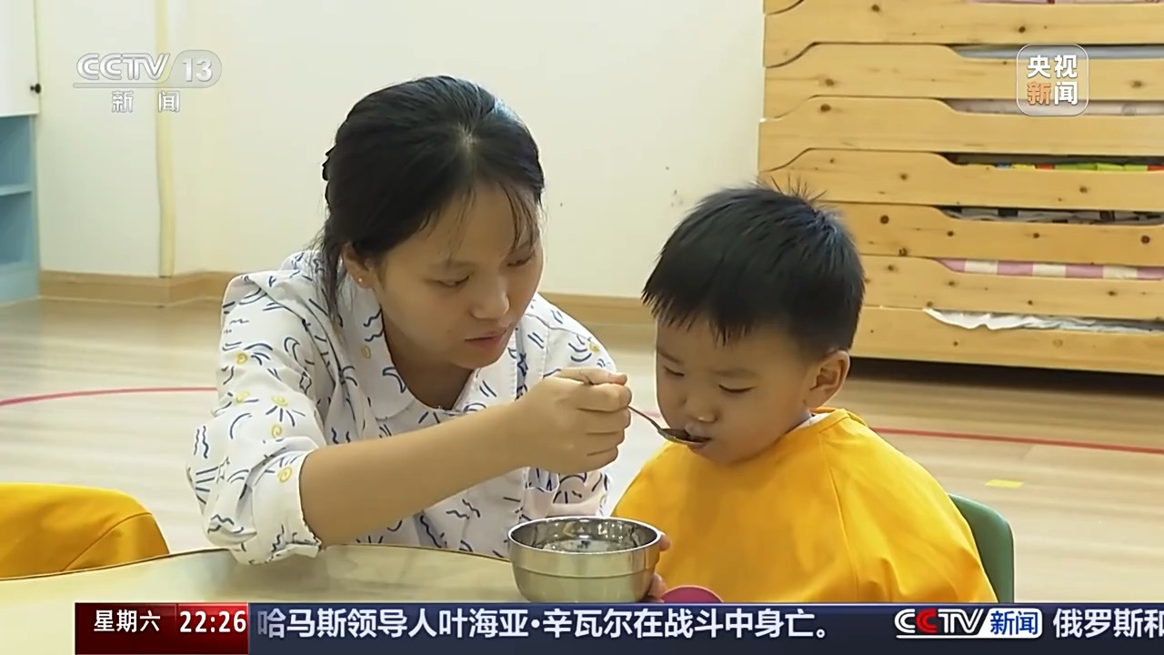 隨著晨檢的結(jié)束,孩子們便可以到食堂享用早餐。每周的食譜都會根據(jù)孩子生長發(fā)育的需求進行調(diào)整。除了入園體檢,以及由營養(yǎng)師制定的食譜外,永川區(qū)婦幼保健院托育中心與其他傳統(tǒng)托育中心不同的是,配有醫(yī)師、推拿師、營養(yǎng)師、治療師、評估師等8師共育服務(wù)團隊,同時還定期為孩子們進行生長監(jiān)測以及發(fā)育評估、五官保健等活動。