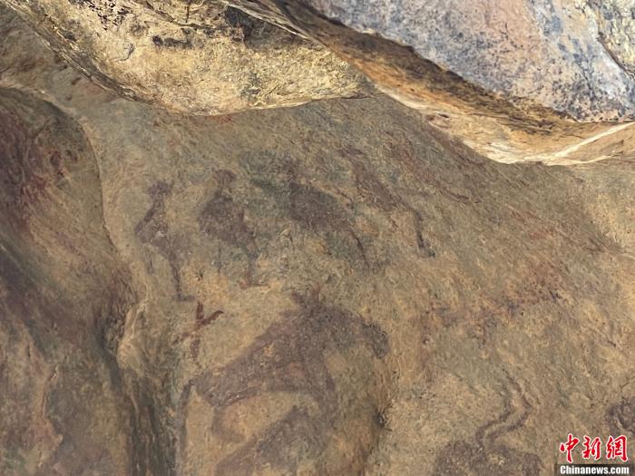 富含鐵礦石和動物膠質(zhì)的顏料將這一幕拓印在避風的巨石上,距離胡安什別克家40多公里的汗德尕特蒙古族鄉(xiāng)敦德布拉克河谷,走一段路,就能相遇這幅萬年前的人類滑雪活動的“活化石”。