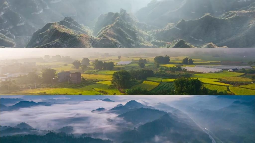云南永善千畝梯田,一派豐收景象;貴州銅仁,秋日云海景觀浩瀚縹緲;新疆額爾齊斯河流域,成群候鳥飛翔在湖光秋色之中。