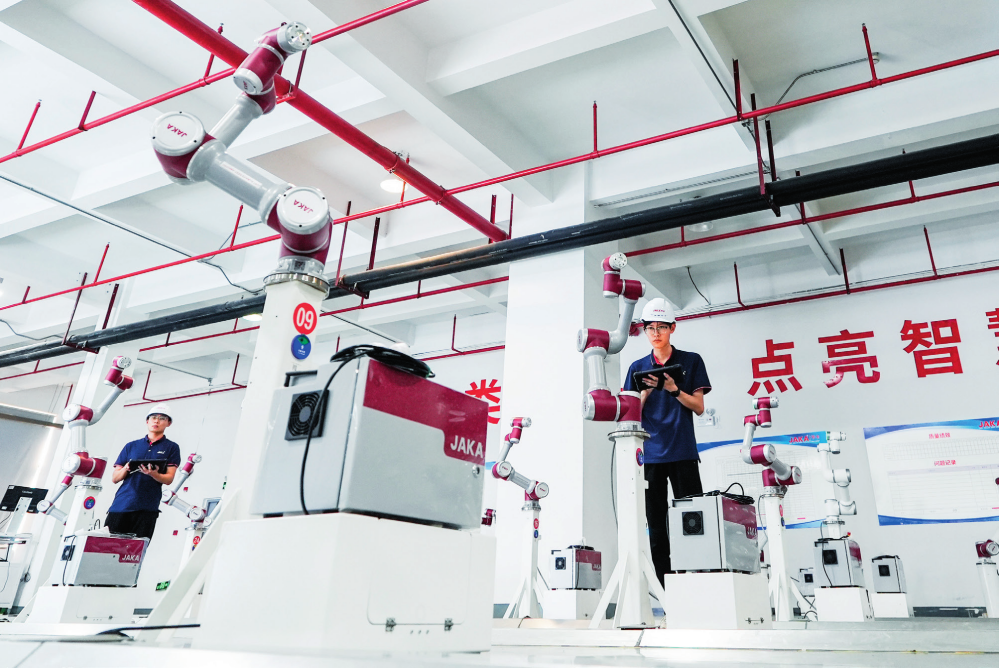 在位于江蘇省常州市武進(jìn)區(qū)的常州節(jié)卡智能裝備有限公司制造基地,工作人員在對柔性智能協(xié)作機器人進(jìn)行全系列測試(2024 年 6 月 14 日攝) 李博攝 / 本刊