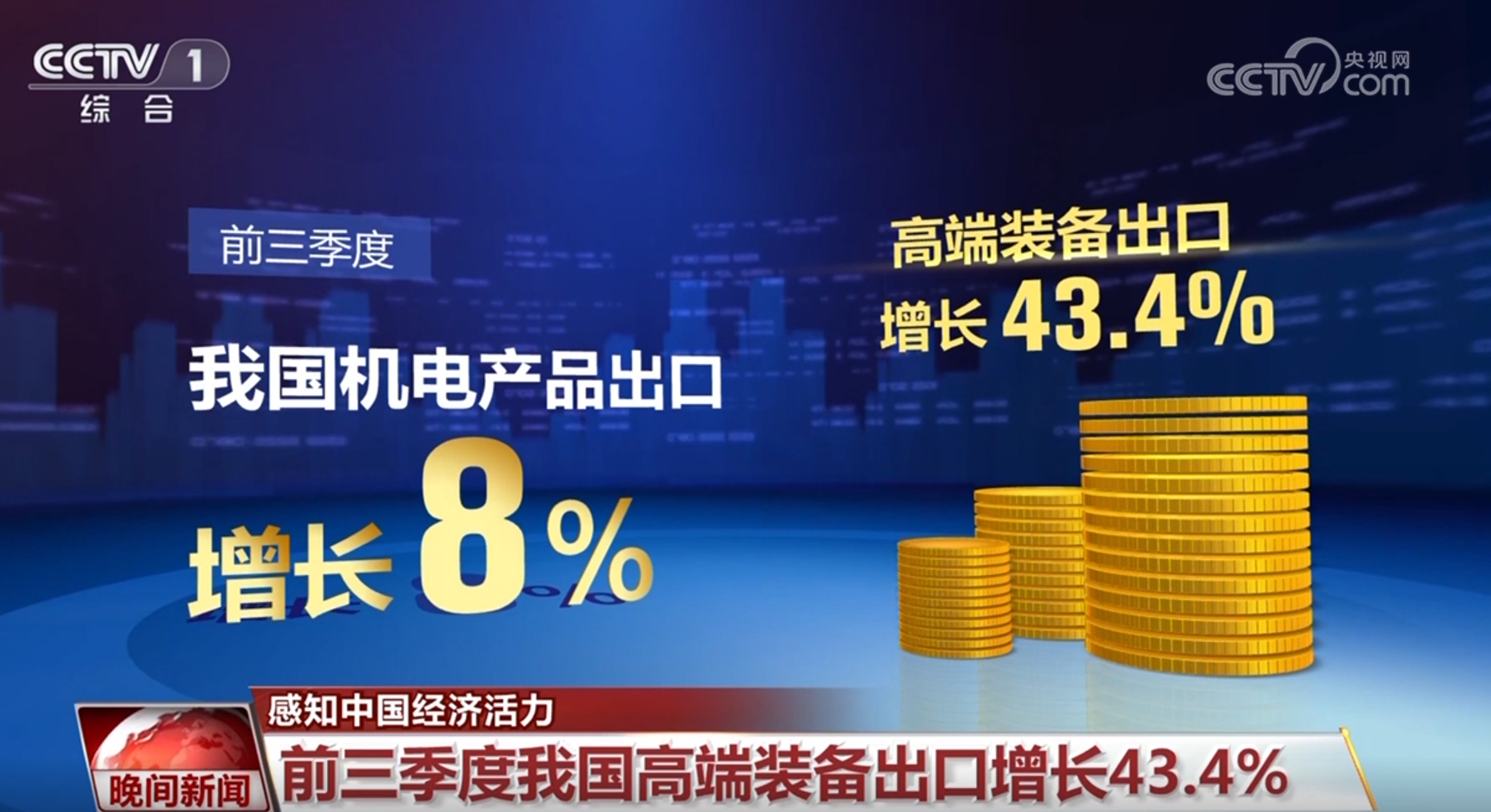此外,創(chuàng)新也讓中國制造更受青睞。前三季度,我國機電產(chǎn)品出口增長8%,占出口總值的59.3%。其中,高端裝備出口增長43.4%,集成電路、船舶、通用機械等高技術(shù)、高附加值產(chǎn)品出口實現(xiàn)兩位數(shù)增長,外貿(mào)結(jié)構(gòu)持續(xù)優(yōu)化。
