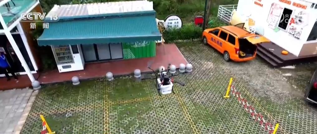 在成都市新都區(qū)的一處快遞分揀中心前,隨著操作人員在控制臺(tái)按下指令,載著快遞包裹的無(wú)人機(jī)轉(zhuǎn)動(dòng)旋翼、騰空而起,按照設(shè)定航線,飛越17公里的農(nóng)田山林。20分鐘后,無(wú)人機(jī)緩緩降落在清流鎮(zhèn)水梨村。住在附近的村民張女士在收到快遞短信后來(lái)到快遞驛站,取出了自己的包裹。
