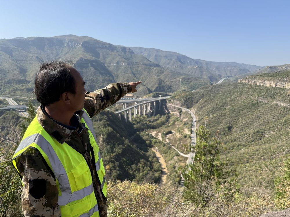 “懸崖造林隊(duì)”隊(duì)長(zhǎng)王永紅介紹種樹情況。