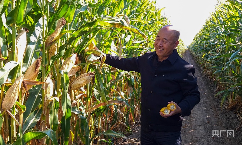 玉米豐收,內(nèi)蒙古“種糧狀元”馬忠臣喜上眉梢(央廣網(wǎng)見習(xí)記者 楊亞東 攝)