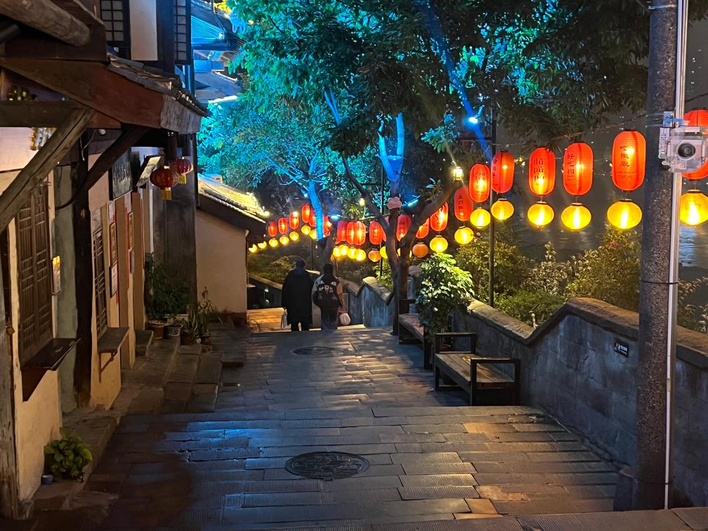 夜晚,游客在山城巷游覽。新華社記者趙佳樂 攝