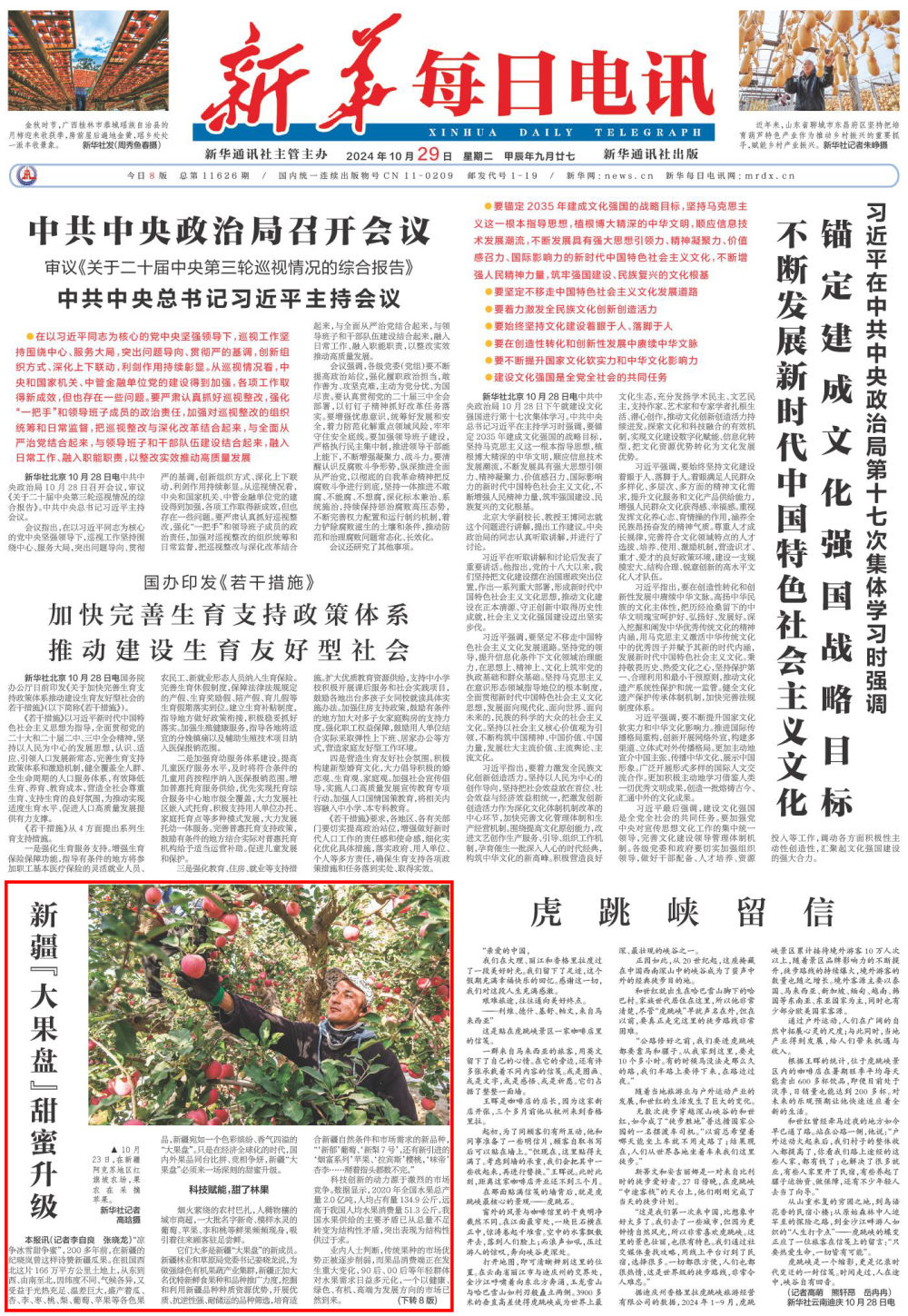 它們大多是新疆“大果盤”的新成員。新疆林業(yè)和草原局黨委書記姜曉龍說,為做強(qiáng)綠色有機(jī)果蔬產(chǎn)業(yè)集群,新疆正加大名優(yōu)特新鮮食果種和品種推廣力度,挖掘和利用新疆品種種質(zhì)資源優(yōu)勢,開展優(yōu)質(zhì)、抗逆性強(qiáng)、耐儲運(yùn)的品種篩選,培育適合新疆自然條件和市場需求的新品種,“‘新郁’葡萄、‘新梨7號’,還有新引進(jìn)的‘煙富系列’蘋果、‘拉賓斯’櫻桃,‘味帝’杏李……掰著指頭都數(shù)不完。”