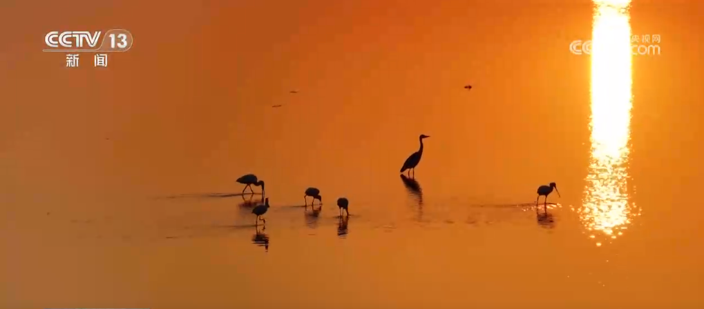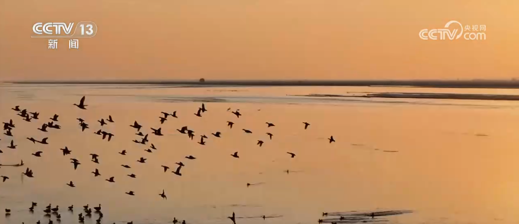 隨著天氣轉(zhuǎn)涼,近日,黃河濕地自然保護(hù)區(qū)山西永濟(jì)段,迎來上萬只遷徙候鳥,夕陽下,鳥兒們或在河面上休憩覓食,或成群結(jié)隊(duì)展翅飛翔,與絢麗的晚霞、水天一色的黃河相映成趣,再現(xiàn)“落日飛天”景觀。此次過境候鳥主要有黑鸛、大天鵝、黑鶴等,當(dāng)?shù)亓謽I(yè)部門組織人員24小時不間斷巡護(hù),同時在鳥類聚集區(qū)安裝了紅外監(jiān)控視頻,保障候鳥遷徙安全。