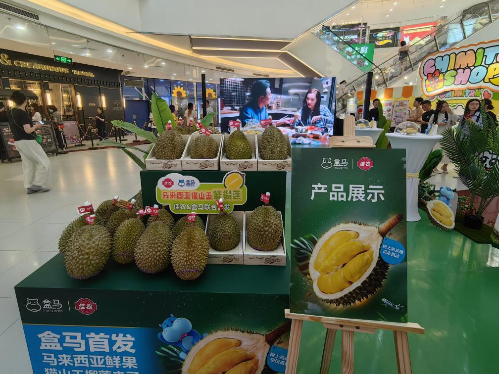 即將首次亮相進(jìn)博會的馬來西亞鮮食榴蓮在商超搶“鮮”上架。新華社記者周蕊 攝